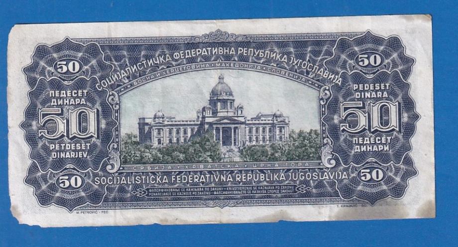 SFRY JUGOSLAVIJA 50 DINARA 1965 CN075101 / 4587