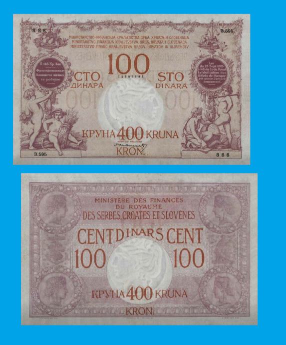 SHS - JUGOSLAVIJA - 100 DINARA / 400 KRUNA 1919