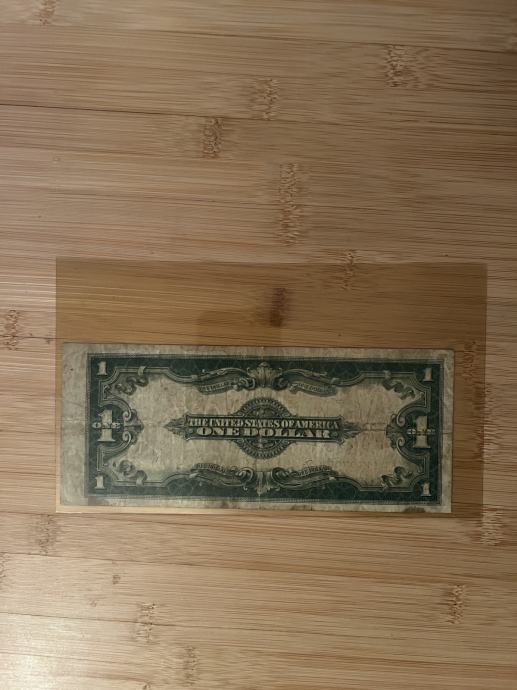 "RIJETKO! 1 američki dolar Silver Certificate iz 1923. godine s plavim pečatom. Povijesna kolekcionarska novčanica stara 100+ godina. Ima habanja ali u solidnom stanju. Očuvana, nije vađena često iz plastične košuljice. Cijena: 80 eura - mogućnost dogovora.