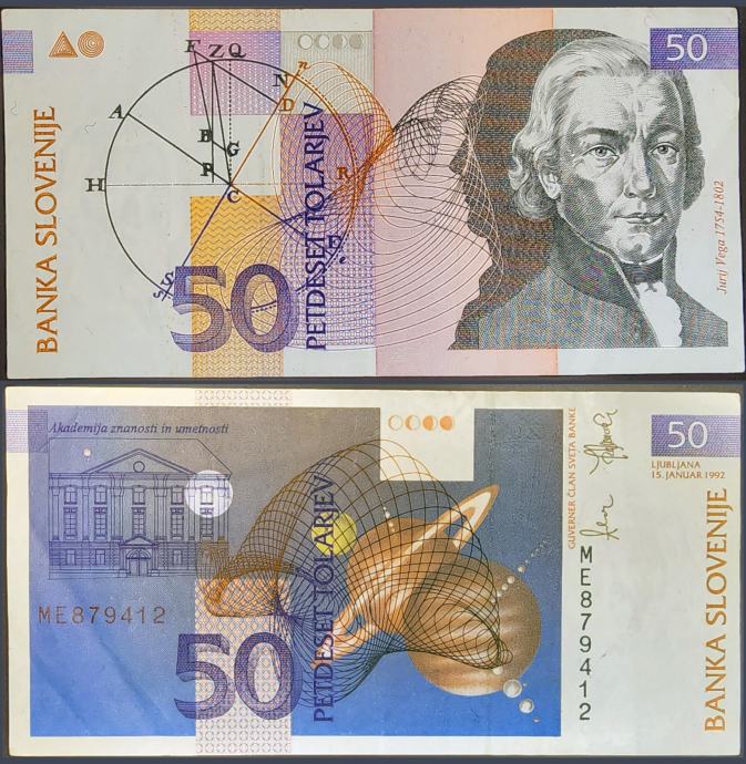 Novčanica: - SLOVENIA / SLOVENIJA (1992) 50 Tolarjev