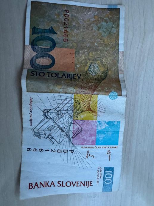 Prodajem originalnu Slovensku novčanicu od 100 tolara, izdane 1992. godine, iz ranog razdoblja samostalne Slovenije.