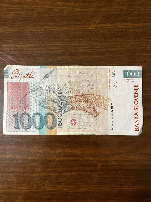Prodajem novcanicu od 1000 slovenskih tolara cijena po dogovoru