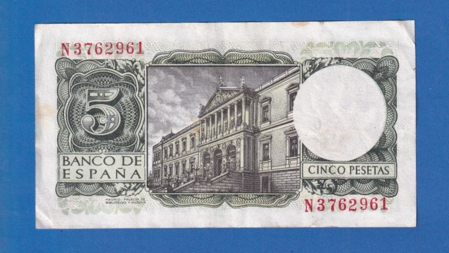 ŠPANJOLSKA 5 PESETAS 1952 XF N3762961 - 4057
