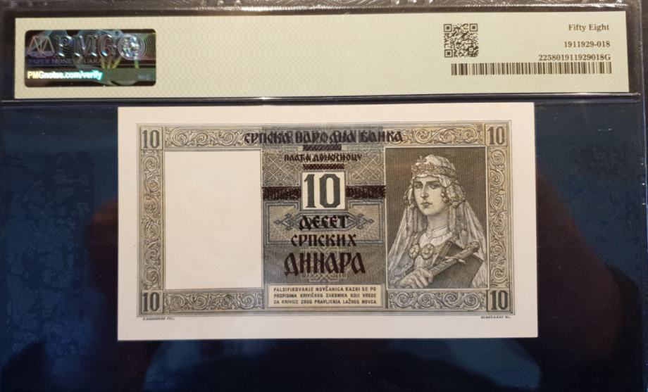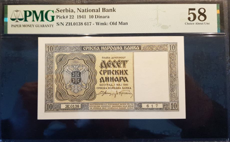 SRBIJA 10 DINARA 1941 PMG 58