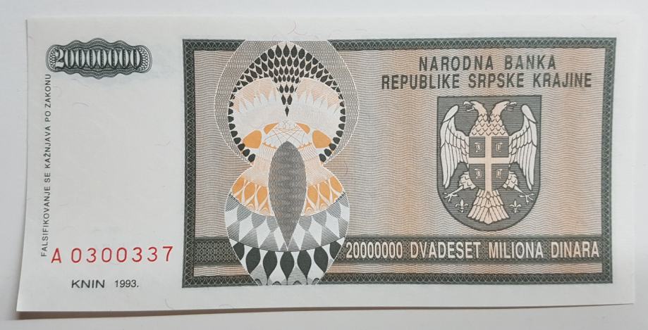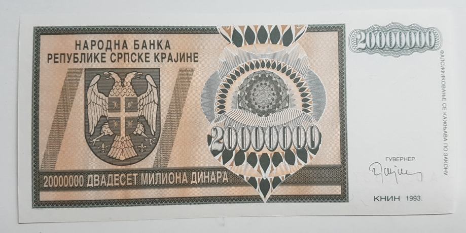 SRBIJA, 20 000 000 DVADESET MILIONA DINARA, KNIN, 1993.
