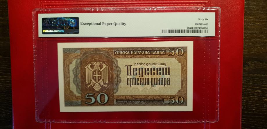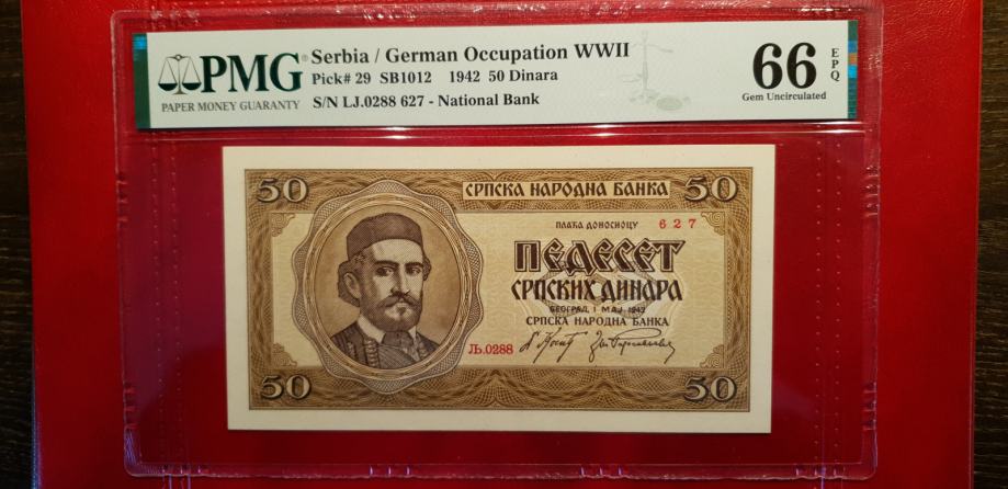SRBIJA 50 DINARA 1942 PMG 66 EPQ