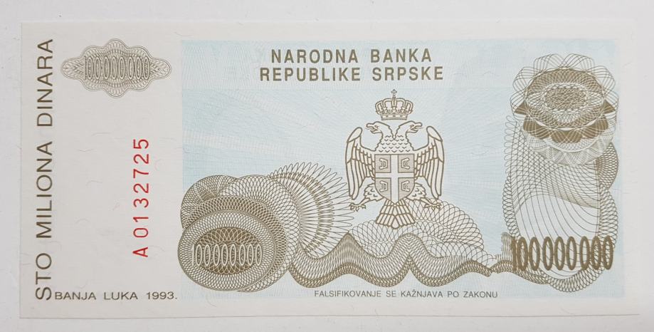 SRBIJA BANJA LUKA, STO MILIONA 100 000 000 DINARA, 1993.