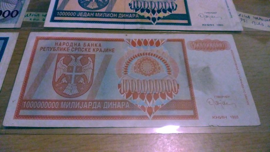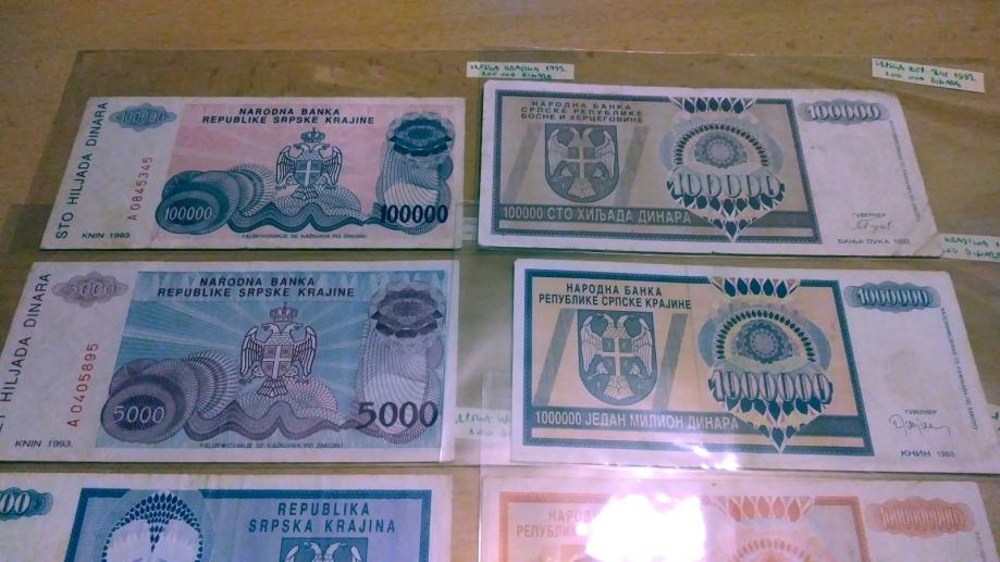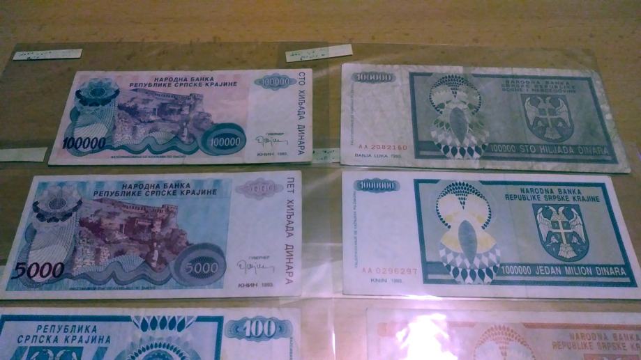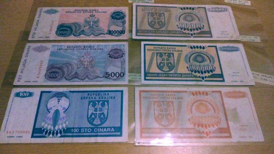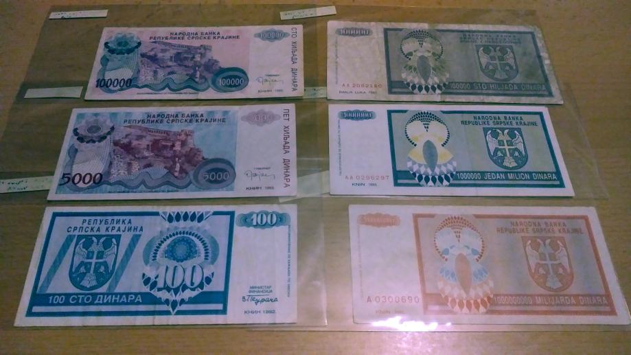 Srpska krajina lot 6 različitih novčanica, Knin i Banja luka
