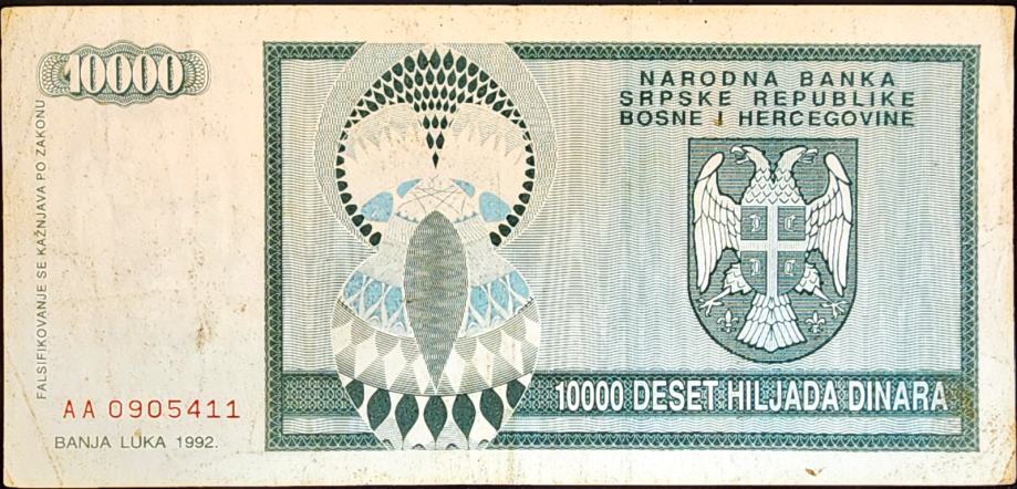 SRPSKA REPUBLIKA - BANJA LUKA (1992) 10 000 Dinara