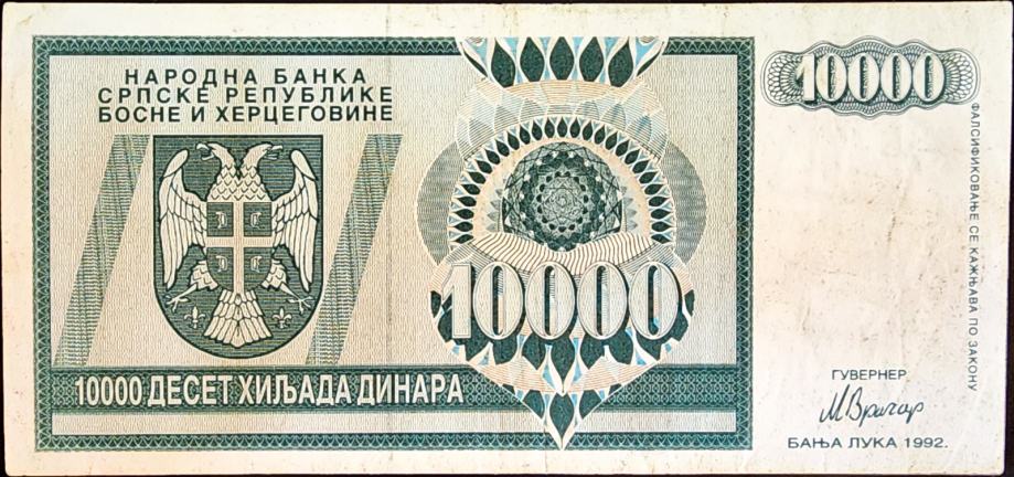 Novčanica: - SRPSKA REPUBLIKA - BANJA LUKA (1992) 10 000 Dinara