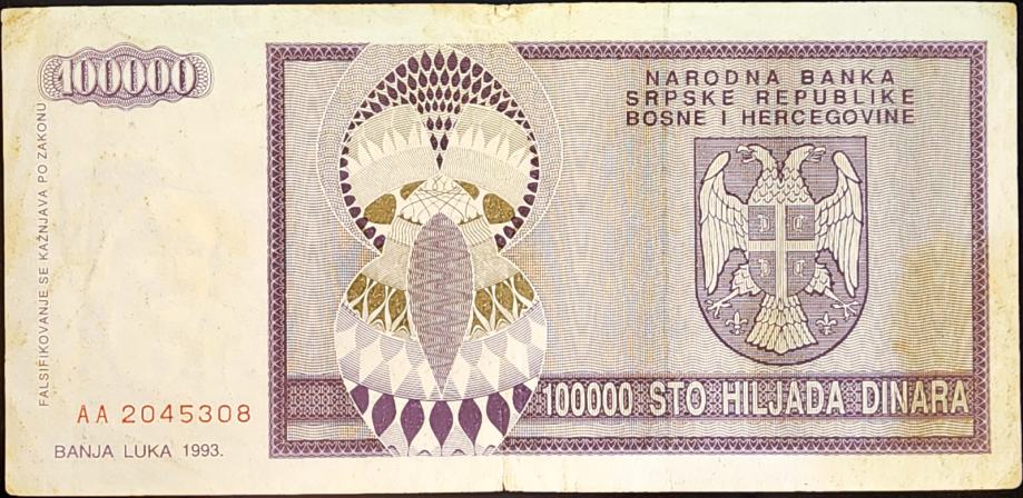 SRPSKA REPUBLIKA - BANJA LUKA (1993) 100 000 Dinara