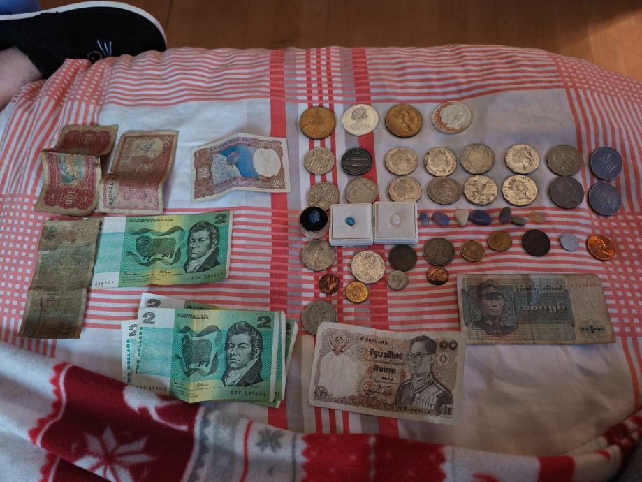 Prodajem nesto kovanica iz Australije, Japanski novac iz vrijemena drugog svjetskog rata, po nesto poludragog kamenja (opal) ima nesto sito i dragog kamenja (dijamanata) cijena za sve zajedno 150e