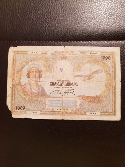 Prodajem novcanicu od 1000 dinara, iz 1931. godine, Narodna banka Kraljevine Jugoslavije