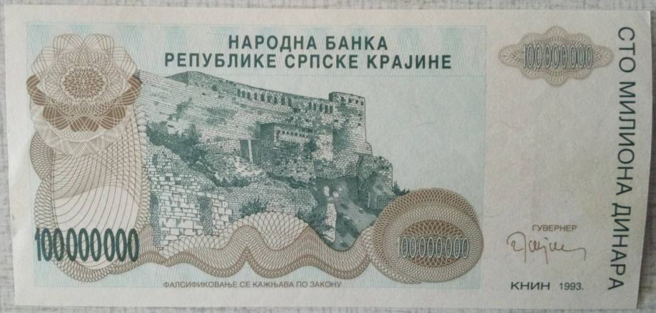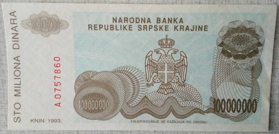 Sto miliona dinara, republika srpska krajina, Knin 1993.