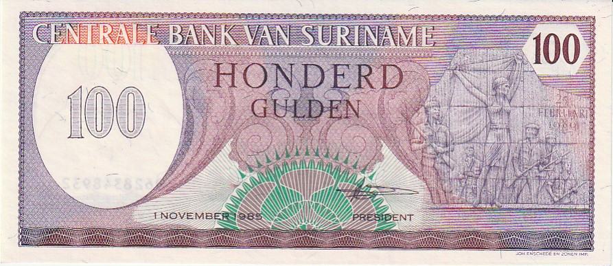 SURINAME 100 GULDEN 1985