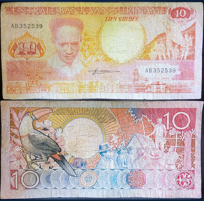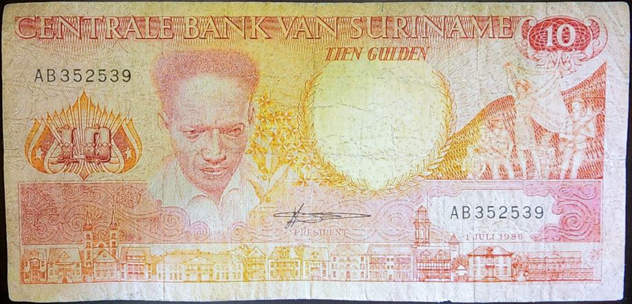 Novčanica: - SURINAME / SURINAM (1986) 10 Gulden