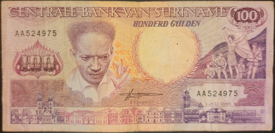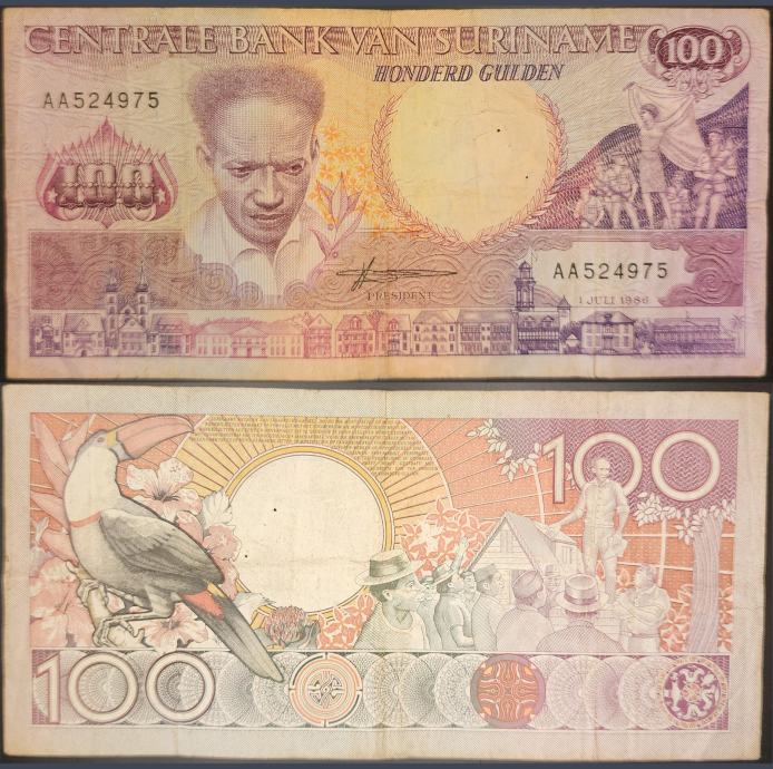 Novčanica: - SURINAME / SURINAM (1986) 100 Gulden