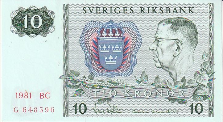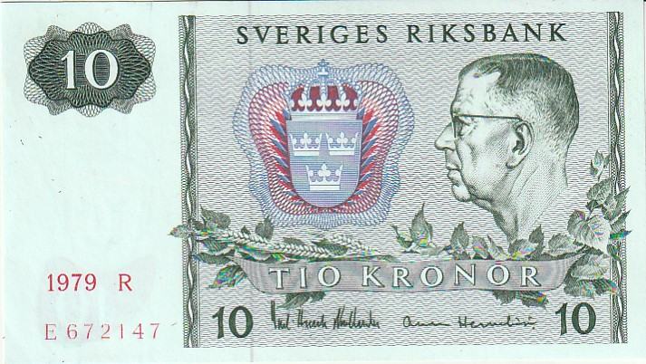 SVERIGES 10 KRONOR 1979,1981,1990 UNC 10 € KOMAD