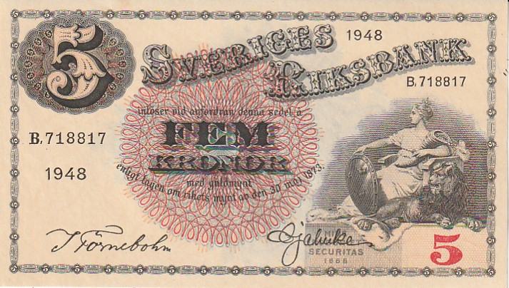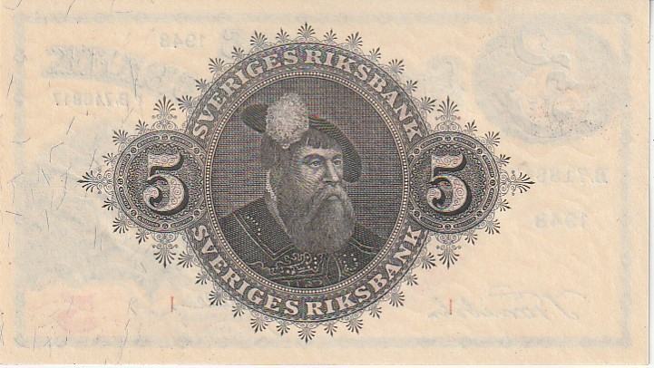 SVERIGES 5 KRONOR 1948 UNC
