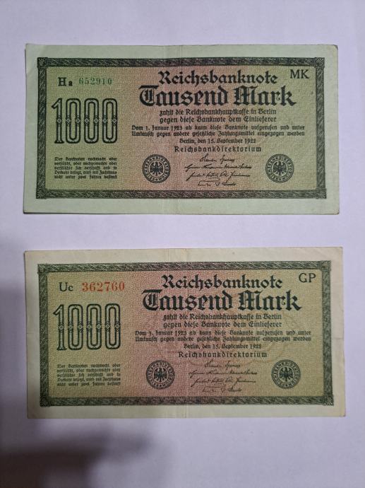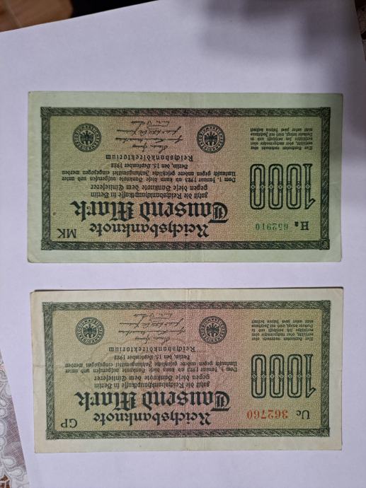 Tisuću maraka iz 1922.godine cijena 4 eura za novcanicu