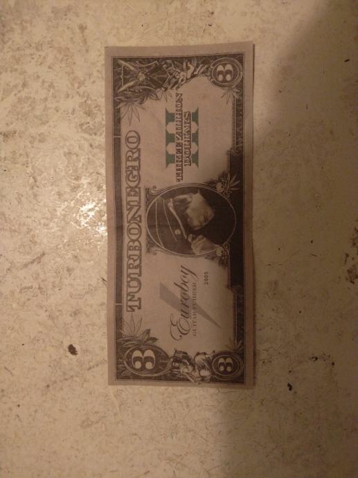 Prodajem novčanicu s Turbonegroovog showa 14.10 2005g koji se je održao u Avalonu u Hoolywoodu. Novčanice su se ispucavale iz topova iznad publike. Rijedak predmet. Ovaj oglas je do 30.11 samo 100kn. Placanje na racun ili gotovina.