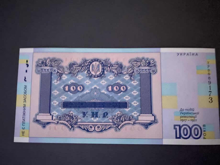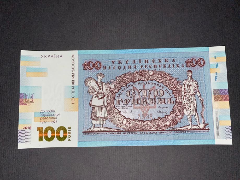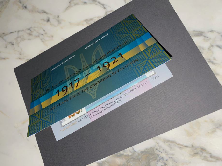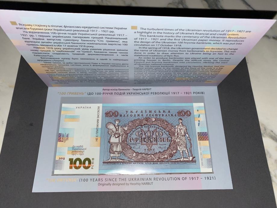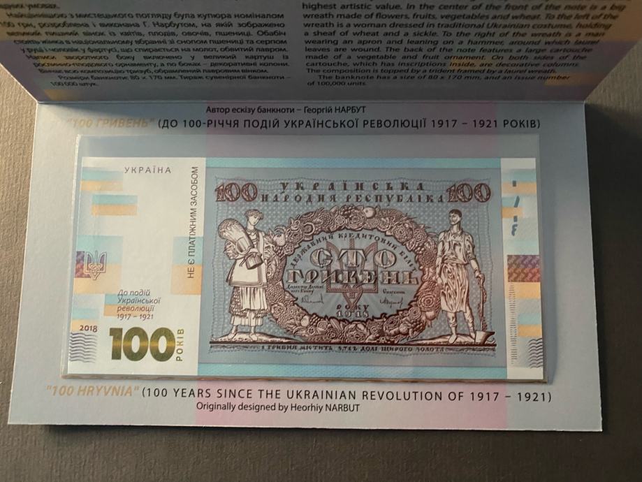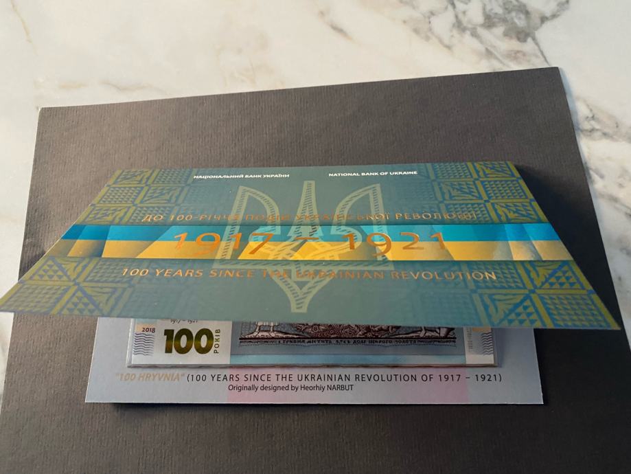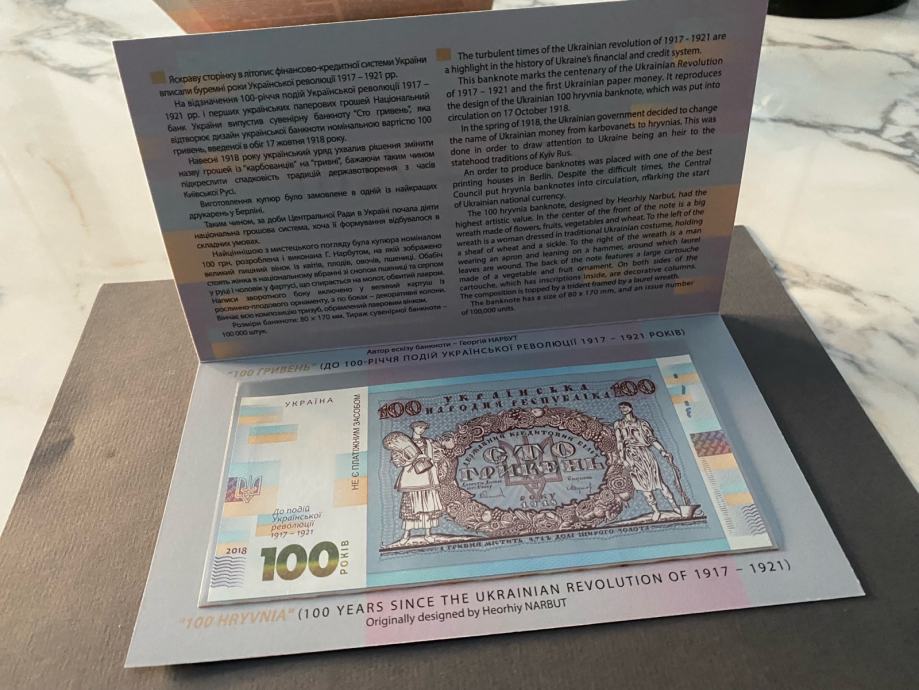 Ukrajinska novčanica od sto grivni u poklon suvenirskom pakiranju (uz 100. obljetnicu događaja Ukrajinske revolucije 1917.-1921.)