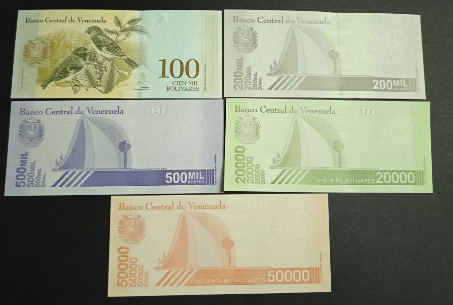 VENEZUELA - LOT 5 NOVČANICA - UNC - OD 100 MIL DO 50000 MIL