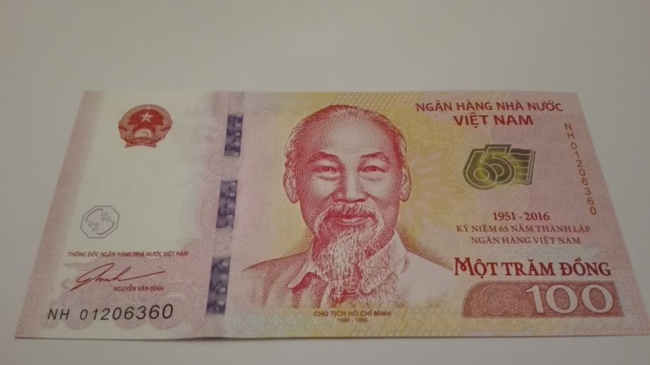 VIJETNAM 100 ĐONG 2016 GODINA UNC