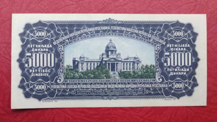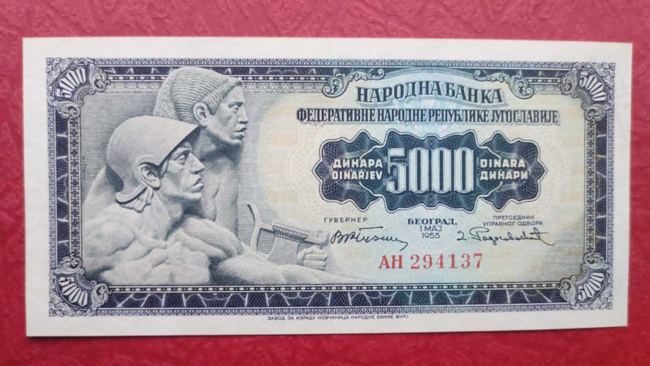 YU 5000 DINARA 1955 aUNC "BEZ BROJA 2"