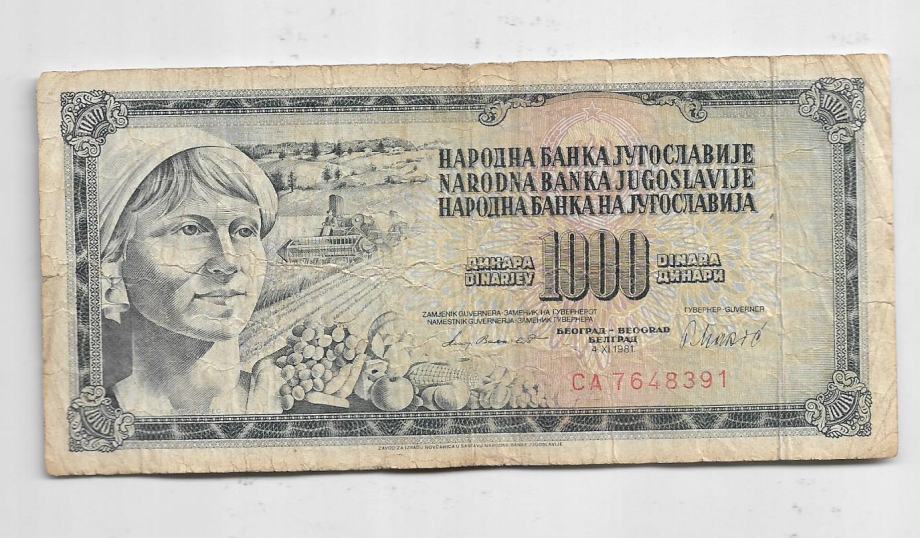 Yugoslavia 1000 dinara 1981