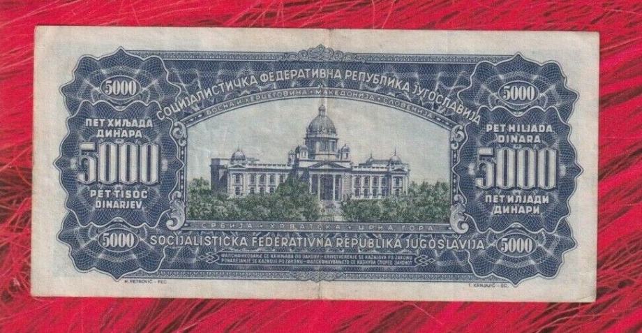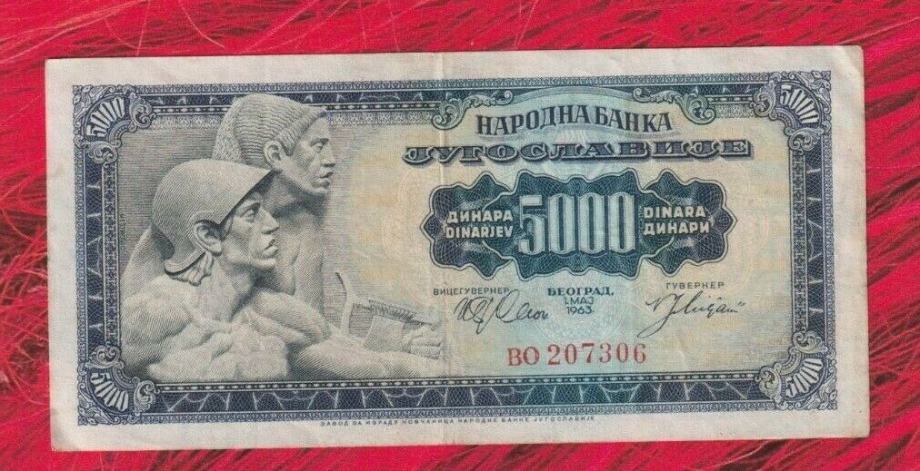 YUGOSLAVIA 5000 DINARA 1963 .G. - top RARE