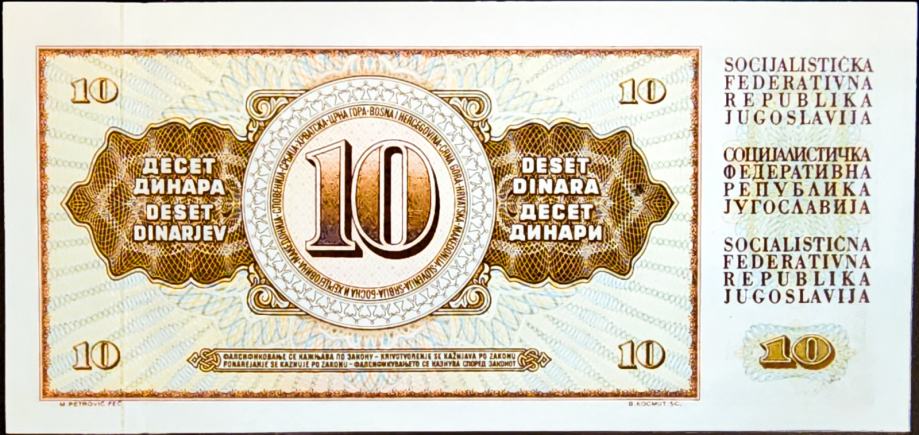 YUGOSLAVIA / JUGOSLAVIJA (1968) 10 Dinara UNC - AN9044125
