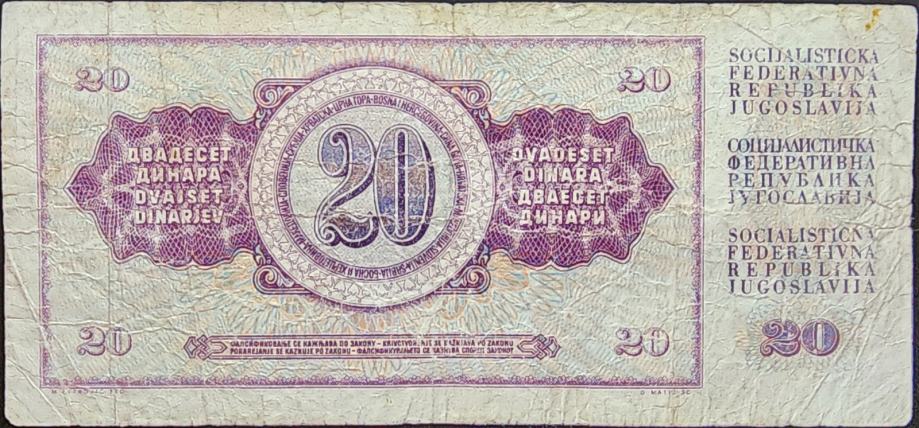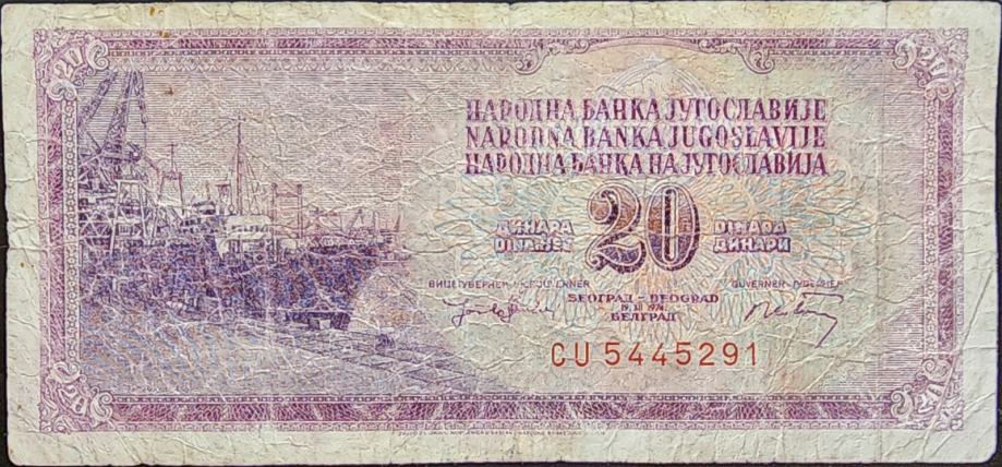 Novčanica: - YUGOSLAVIA / JUGOSLAVIJA (1974) 20 Dinara - CU5445291