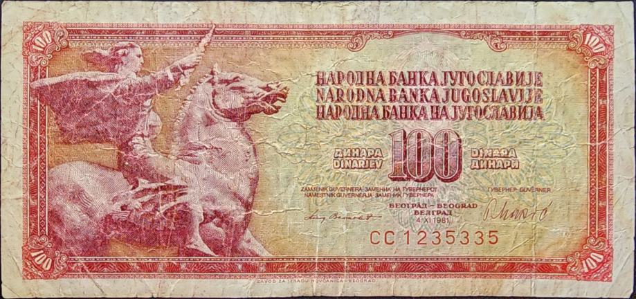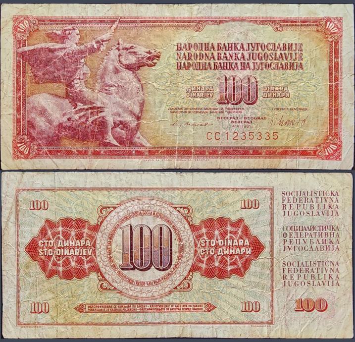 Novčanica: - YUGOSLAVIA / JUGOSLAVIJA (1981) 100 Dinara - CC1235335