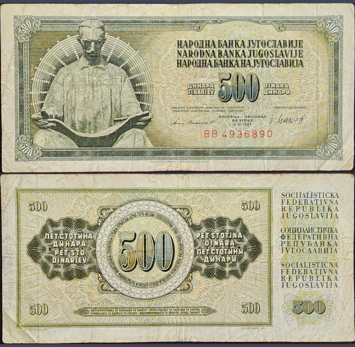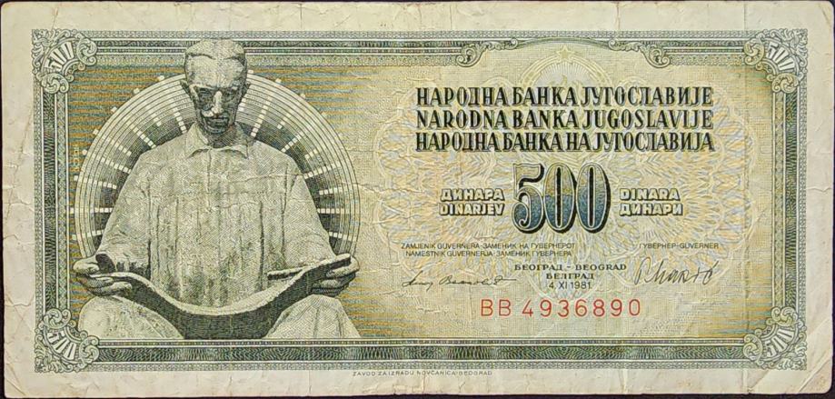 Novčanica: - YUGOSLAVIA / JUGOSLAVIJA (1981) 500 Dinara - Tesla - BB4936890