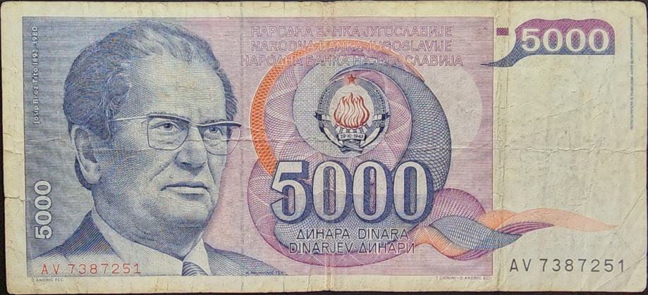 Novčanica: - YUGOSLAVIA / JUGOSLAVIJA (1985) 5000 Dinara - Tito - AV7387251