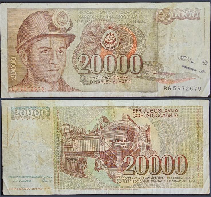 Novčanica: - YUGOSLAVIA / JUGOSLAVIJA (1987) 20 000 Dinara - BG5972679