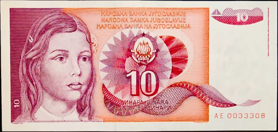 YUGOSLAVIA / JUGOSLAVIJA (1990) 10 Dinara UNC - AE0033308
