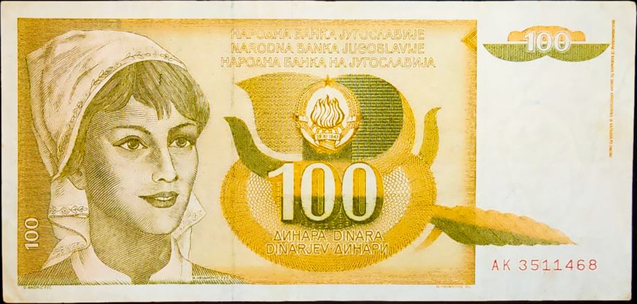 YUGOSLAVIA / JUGOSLAVIJA (1990) 100 Dinara