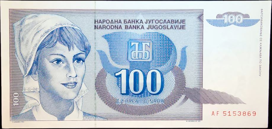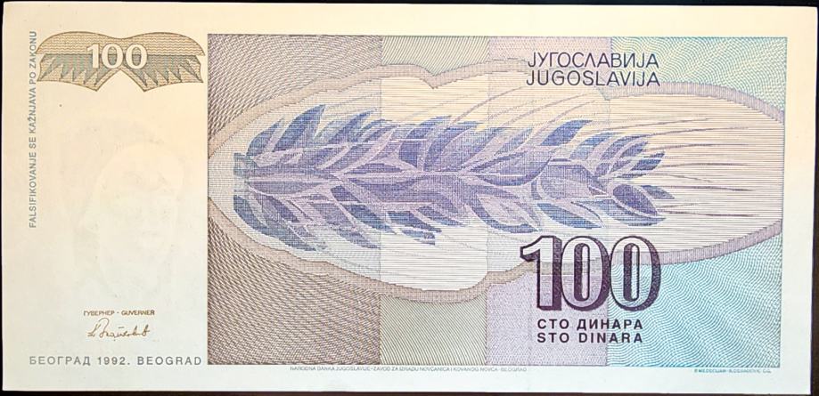 YUGOSLAVIA / JUGOSLAVIJA (1992) 100 Dinara UNC