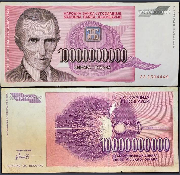 YUGOSLAVIA / JUGOSLAVIJA (1993) 10 000 000 000 Dinara - Tesla