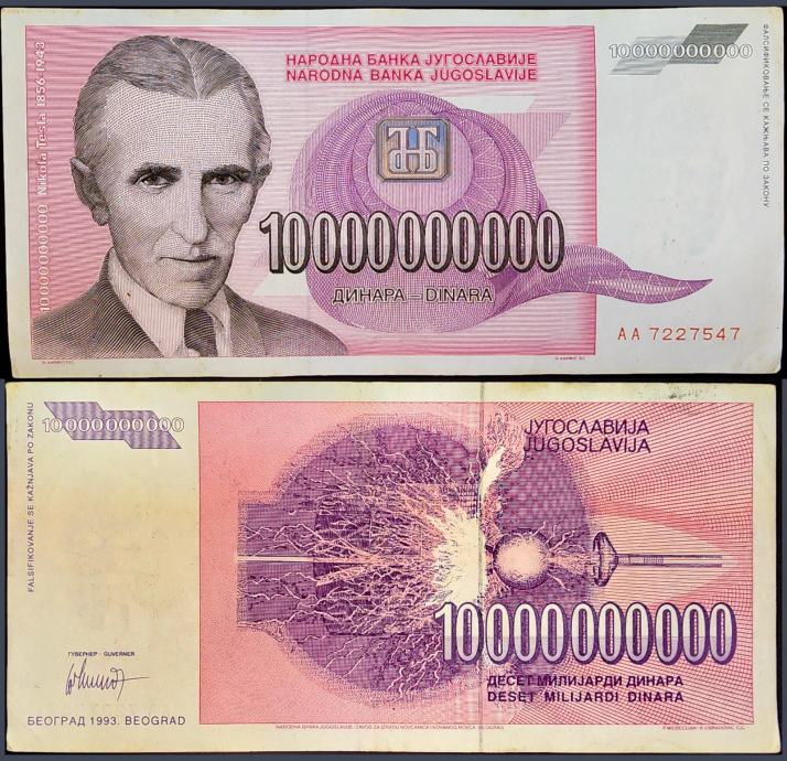 Novčanica: - YUGOSLAVIA / JUGOSLAVIJA (1993) 10 000 000 000 Dinara - Tesla