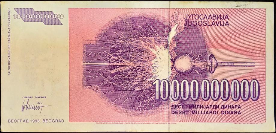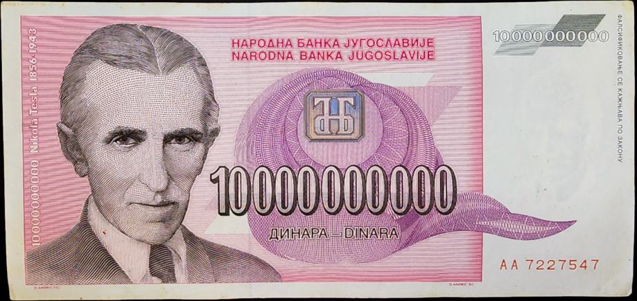 YUGOSLAVIA / JUGOSLAVIJA (1993) 10 000 000 000 Dinara - Tesla
