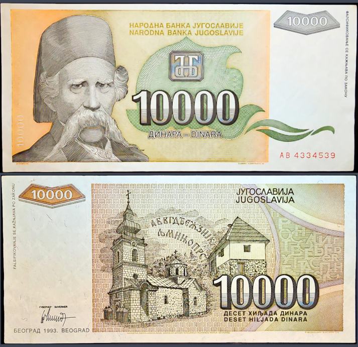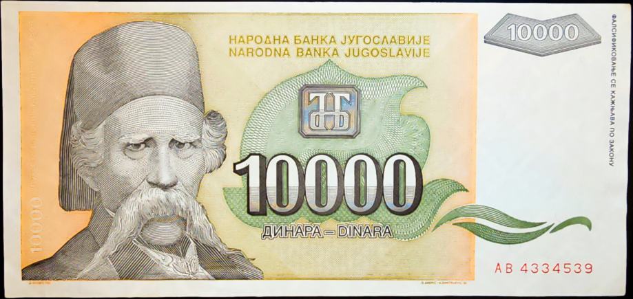 Novčanica: - YUGOSLAVIA / JUGOSLAVIJA (1993) 10 000 Dinara - AB4334539
