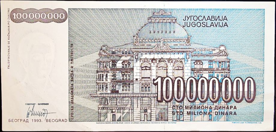 YUGOSLAVIA / JUGOSLAVIJA (1993) 100 000 000 Dinara - AA7737901