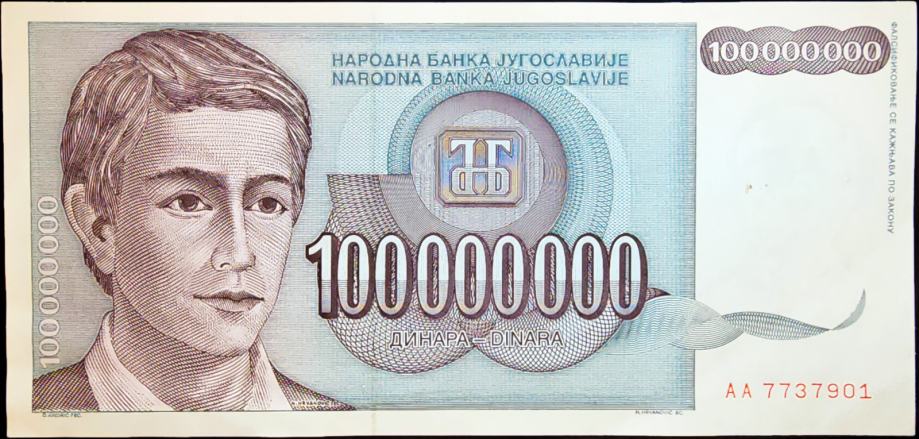 Novčanica: - YUGOSLAVIA / JUGOSLAVIJA (1993) 100 000 000 Dinara - AA7737901