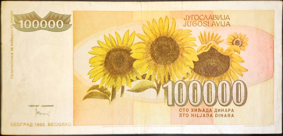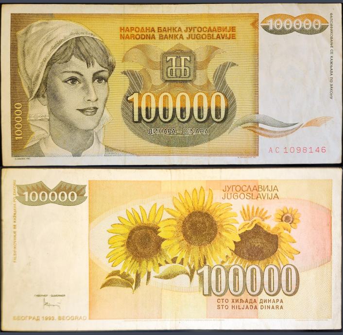 YUGOSLAVIA / JUGOSLAVIJA (1993) 100 000 Dinara