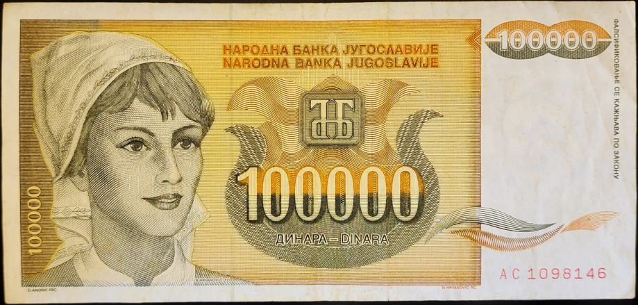 Novčanica: YUGOSLAVIA / JUGOSLAVIJA (1993) 100 000 Dinara