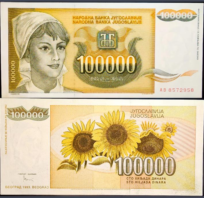 YUGOSLAVIA / JUGOSLAVIJA (1993) 100 000 Dinara UNC - AB8572958