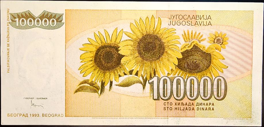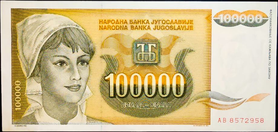 Novčanica: - YUGOSLAVIA / JUGOSLAVIJA (1993) 100 000 Dinara UNC - AB8572958